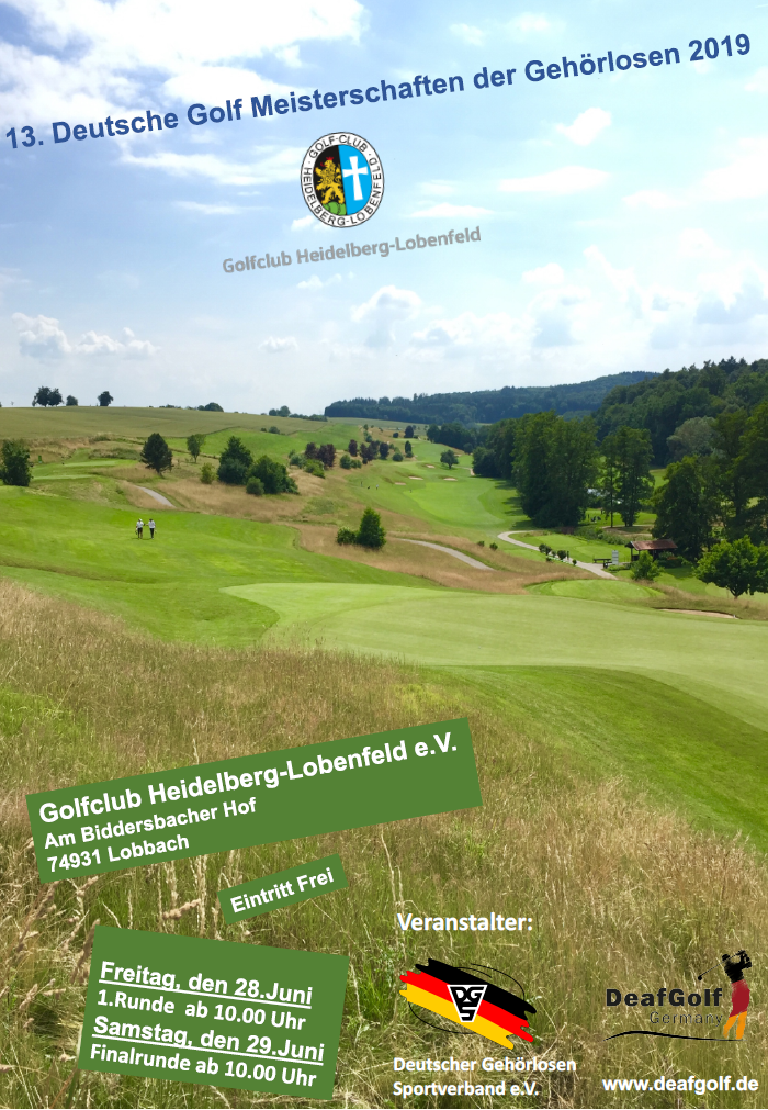 Nun ist es soweit, dass wir 10 Jahre nach Gründung der Golfabteilung unser erstes Heimspiel bei den Deutschen Gehörlosen Golfmeisterschaften haben. Das Turnier fand auf der schönen Golfanlage von Heidelberg Lobenfeld statt. Die Heidelberger Mannschaft tritt dieses Jahr zum ersten Mal komplett an. Erstmals sind wir in 5 von 6 Wettbewerben vertreten (Herren, Damen Zählspiel und Herren, Damen Stableford und die Teamwertung. Einzig in der Senioren Zählspielwertung sind wir nicht vertreten. Bei diesem Turnier durften wir erstmals an der Teamwertung teilnehmen und es wird spannend, wo wir am Ende stehen werden. Nach den Handicaps zu urteilen, sind wir Favorit auf den Teampokal. Für die Teilnahme waren mindestens 3 Golfer mit HCP 28 und besser nötig, um ein Team zu bilden. Mit den Titelverteidigern bei den Herren Nico Guldan und bei den Damen Amelie Paloma Gonzalez Podbicanin trat auch Jochen Krippner im Zählspiel Team an. Petra Brandt und Dennis Stadtmüller treten für den Verein in der Stableford Wertung an. Bei Temperaturen von 33 bis 39 Grad Celsius ging dieses Turnier als die härteste Hitzeschlacht in die Deutschen Gehörlosen Golf Geschichte ein. Schon die Proberunde am Donnerstag den 27.06.2019 begann für die Golfer zu einer Zerreißprobe zu werden.