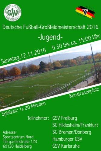 GSV Karlsruhe – GSV Heidelberg 8:1 (3:0) am 22.10.2016 Aufstellung: Vörg – Batu, Heymel, Lange (C), T. Goller, Imanov – Voltz (75.min Herboth), Olgun, Ebert, J. Goller (80.min Schönauer) – Schillo Tore: 6:1 Schillo 71.min Nach unseren Heimsieg gegen Frankenthal am 3. Spieltag hatten wir am 4. Spieltag spielfrei und am 5. Spieltag beim Auswärtsspiel gegen Frankfurt kam leider …