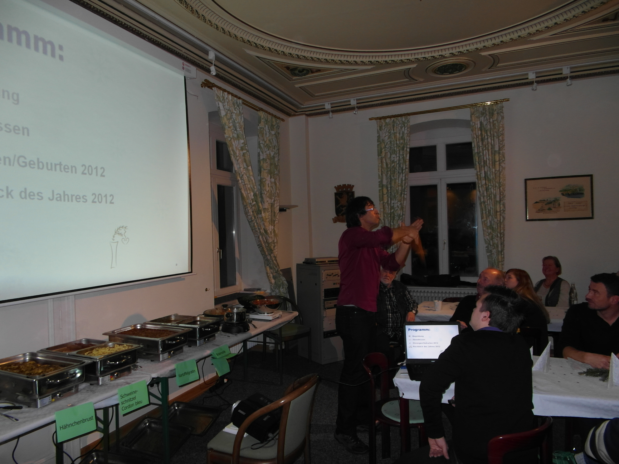 Anschließend wurde ein Jahresrückblick von 2012 mit vielen Berichten und Bildern gezeigt. Dabei kamen viele interessante Geschichten zu hören. Danach wurden die Vorstandmitglieder für ihre ehrenamtliche Arbeit für den Verein GSV Heidelberg geehrt.