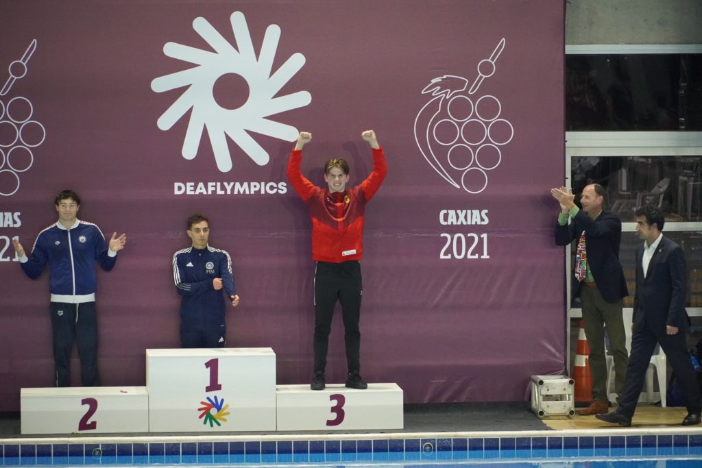 Vor den Deaflympics hat der Langstreckenschwimmer weder bei 800 m und 1500 m Freistil mit einer Medaille gerechnet. Über 1500 m war er jedoch ziemlich aufgeregt, weil das die Strecke ist, auf der er große Hoffnungen setzt, nachdem er zuletzt bei der Kurzbahnweltmeisterschaften in Polen Gold geholt hat.