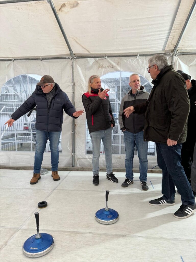 Nach dem EisstockschieĂźen bleiben wir direkt vor Ort und genieĂźen die Christmas-Party mit GlĂĽhwein und Wurst. đźŚđźŤ·