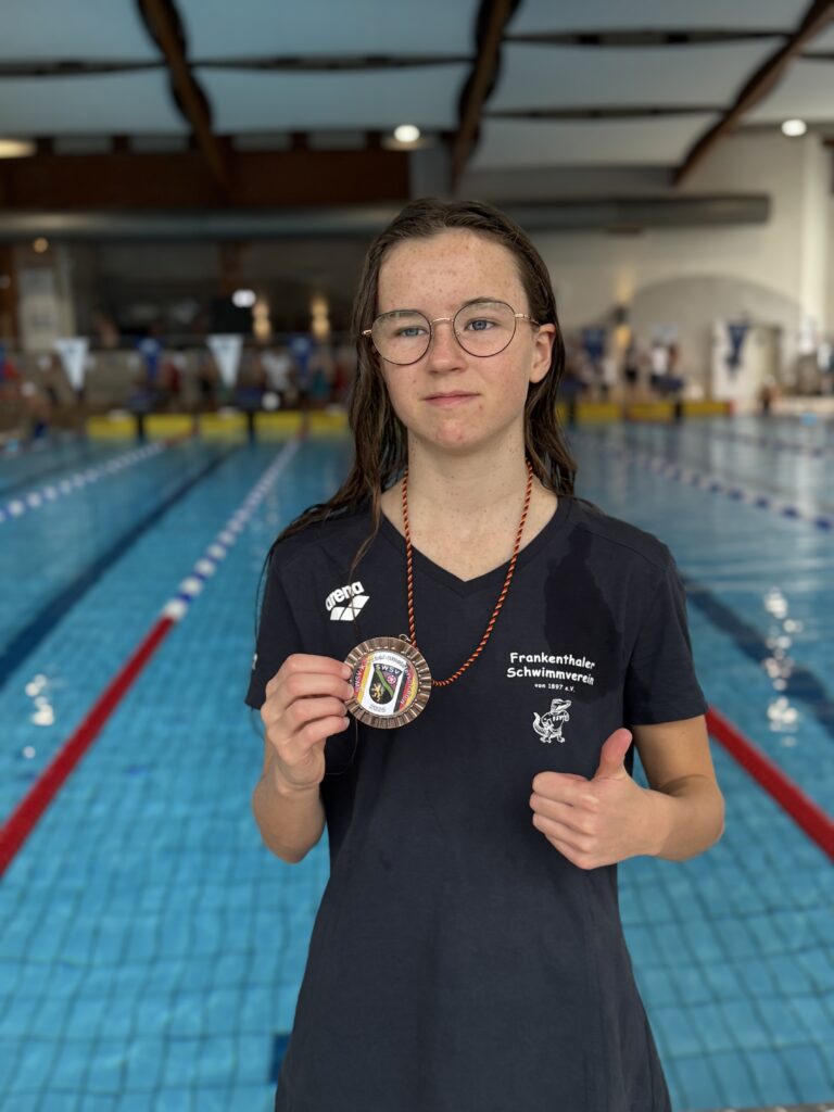 Für Lilia war es der erste Start bei den Südwest-Kurzbahnmeisterschaften – ermöglicht durch ihre starke Qualifikationszeit aus Poznań. Mit großem Ehrgeiz wollte sie ihre Leistungen weiter verbessern – und das gelang ihr eindrucksvoll: Sie unterbot ihren erst zwei Wochen alten Altersklassenrekord um 0,7 Sekunden und gewann zudem ihre erste Bronzemedaille!