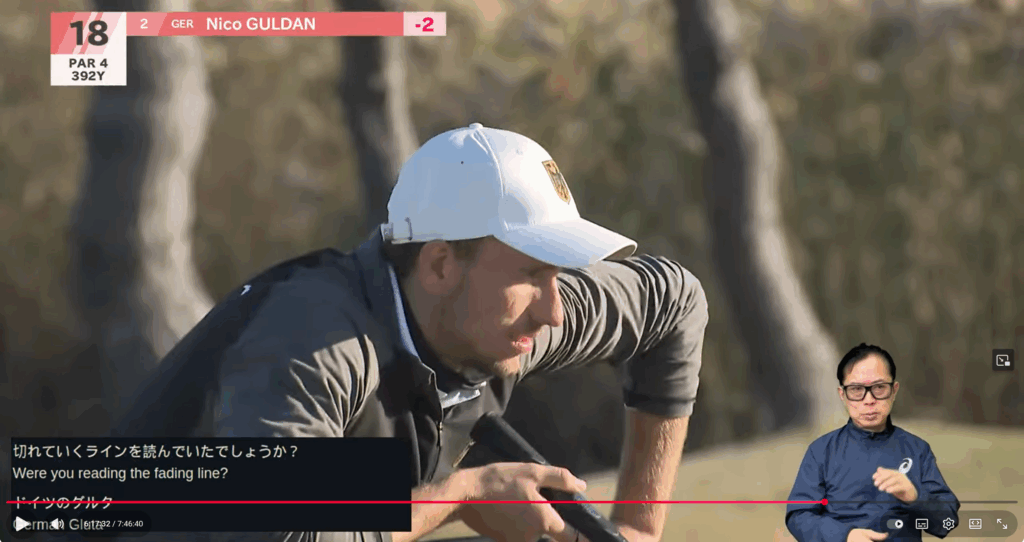 Hall liegt weiter zurück, 3 Schläge hinter Guldan, und wirkt noch nicht ganz im Rhythmus.