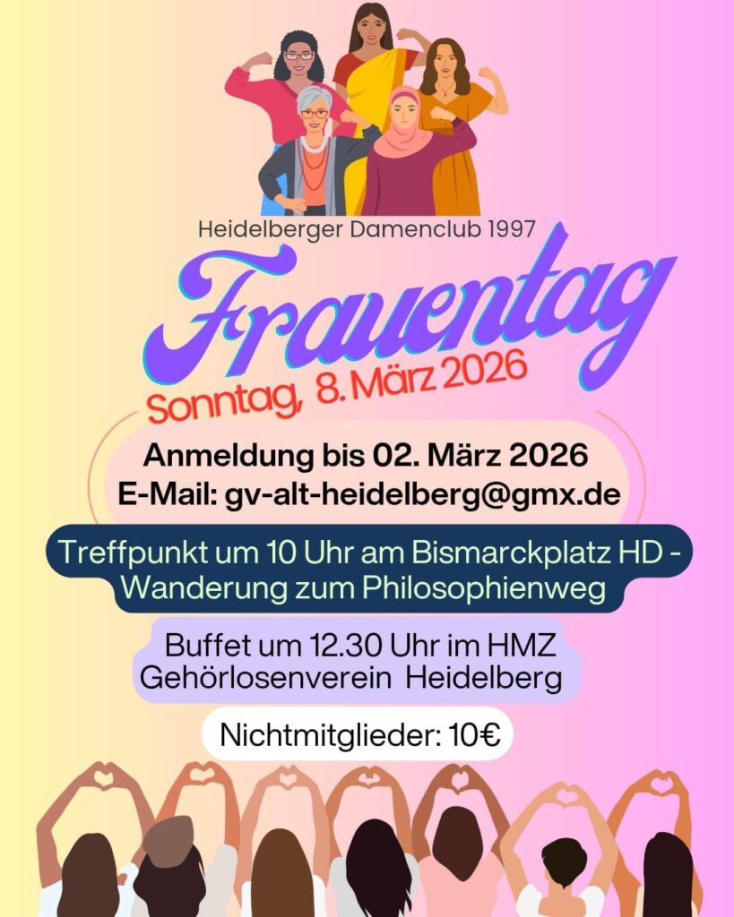 Der Gehörlosenverein Heidelberg organisiert gemeinsam mit dem Damenclub und dem Gehörlosensportverein Heidelberg eine besondere Veranstaltung nur für Frauen zum Frauentag am 08.03.2026.