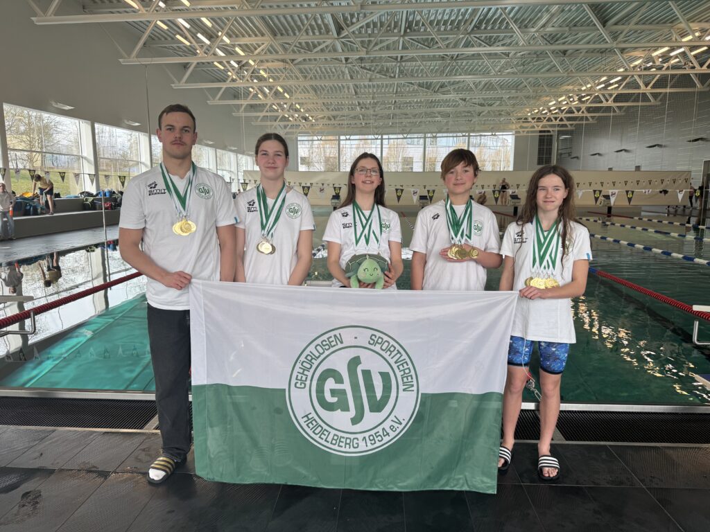 Bei den offenen Sächsischen Schwimmmeisterschaften für Gehörlose am 28. März in Zwickau konnten unsere Schwimmerinnen und Schwimmer großartige Erfolge feiern: Zwei Staffel-Goldmedaillen sowie 16 Gold-, 7 Silber- und 1 Bronzemedaille gingen nach Heidelberg.