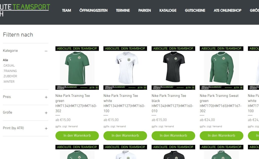 Stöbere durch unser Sortiment und finde genau das Richtige für Sport und Alltag – im Look unseres Vereins.